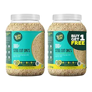 Yogabar Steel Cut Plain Oats 1.5Kg | 1+1 | Healthy Protein Breakfast Oatmeal| Premium & Gluten Free Oats | 100% Whole Grain, Non Gmo | High In Iron & Fibre | 1.5 Kg Pack Of 2 | 100%Vegan