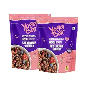Yogabar Wholegrain Breakfast Muesli - Dark Chocolate + Cranberry, 700g (Pack of 2) (Super Saver Pack) | Healthy Cereals | Granola | Gluten Free | Antioxidant & Protein Rich