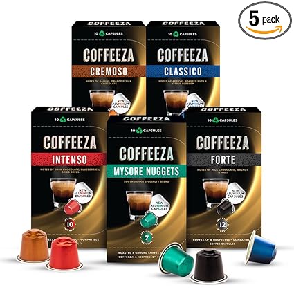 COFFEEZA Favorites Variety Pack Coffee Pods - 50 Aluminium Coffee Capsules - 275 Gm